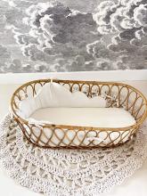 Tour de couffin en forme de nuages pour habiller le couffin de Bébounette (le précédent ayant été mangé par les souris du grenier).