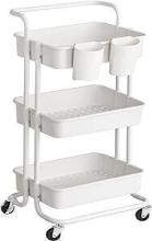 SONGMICS 3 Tier Mobile Trolley, Trolley on Wheels, Storage Shelf with Handle, 2 Pots, 2 Brakes, Plastic Baskets, Easy Assembly, for Bedroom, Kitchen, White BSC067W01 : Amazon.com.be: Home & Kitchen