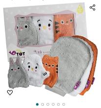 Lot de six gants de toilette en bambou. Le jouet de bain idéal !