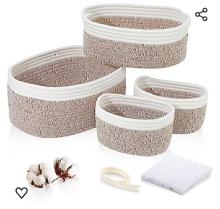 Lot de 4 paniers de rangement en corde de coton tressé, avec poignées. Organisateur pour la table à langer de bébé