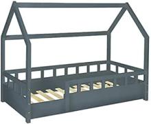 IDMarket - Lit cabane Enfant 80 x 160 cm NEREE Gris avec sommier et barrières : Amazon.fr: Cuisine et Maison