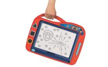 Een speciaal tekenbord waarop kinderen tekeningen kunnen maken en weer verwijderen voor eindeloos tekenplezier.Bevat drie stempels met geometrische vormen