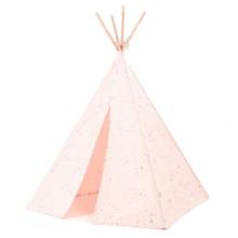 Tipi Nobodinoz Phoenix en coton bio rose Dream Pink motif Gold Stella. Coin jeu & lecture, design raffiné, bois naturel. Fabriqué en Espagne.
