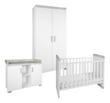 Inclus : lit évolutif + commode avec rallonge + garde-robe 2 portes.
