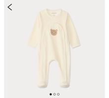 Dors-bien en velours. Coloris uni écru. Encolure ronde. Ouverture pressionnée effet pont à l'avant. Patch ourson effet bouclettes 3D sur le devant. Manches longues. Pieds fermés.