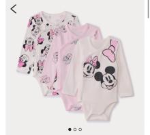 Lot de 3 bodies manches longues Minnie Disney pour bébé fille avec ouvertures différentes selon l'âge