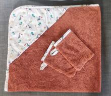 Bon pour du tissus pour cette grande cape de bain 1m x1m et ces deux gants de toilette cousus par maman.