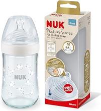 NUK Nature Sense Drinkfles van glas met temperatuurregeling en siliconen fopspeen voor baby's, maat M, 240 ml, BPA-vrij, wit : NUK: Amazon.com.be: Babyproducten