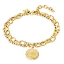 Bracelet en acier poli couleur or, pièce sur 2 chaînes différentes