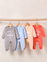 SHEIN 4 pièces Ensemble de combinaisons d'intérieur à manches longues et longueur complète grise, abricot clair, bleu clair et orange pour nouveau-nés, simple et mode