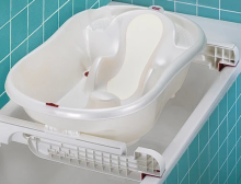 À l'aide des barres de soutien, la baignoire peut facilement être ancrée dans la baignoire des adultes.