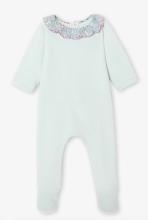Décliné dans un coloris bleu aqua inédit ou rose pâle, laissez-vous séduire par cette version chic et colorée du dors-bien bébé fille. Réalisé en velours souple et confortable, il est orné d'une collerette et de dessous de pieds en Tissu Liberty.