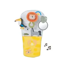 Kleurrijk reisspeelgoed van hoge kwaliteit voor naar achteren gerichte baby's voor plezier, ontwikkeling en veiligheid in één.Biedt tal van ontwikkelingsactiviteiten voor baby's tijdens het reizen, babyveilige spiegel, rammelende harry de leeuw en een manenbijtring bevestigd aan een zachte bijtring en Tuki de toekan.Aan de onderkant van het speelgoed bevindt zich een elektronische eenheid met muziek en licht die worden geactiveerd door de trap van de baby.Houdt zowel de baby als de ouder kalm en gelukkig in de auto.