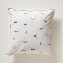 Avions, hélicoptères et petites étoiles s'envolent sur cette taie d'oreiller au style rétro chic. Un imprimé exclusif dessiné par nos stylistes. Dos coloris ivoire avec petites étoiles coloris caramel. Rabat 20 cm. Volant plat 1 cm