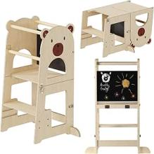 BUDDY BABY - Tour d'apprentissage Montessori pour Enfants - Bureau et Tabouret Convertibles - Tour auxiliaire de Cuisine en Bois Massif avec Barre de sécurité - Pliable (Blance) (Bois) : Amazon.com.be: Bébé et Puériculture