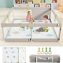 UANLAUO 150x150cm Parc Bebe avec Tapis bébé, Parc Enfant,XXL Parc pour Bebe avec 4 Anneau,Aire de Jeu Non Toxique et sûre pour Les bébés, Parc bébé avec Porte à Fermeture éclair : Amazon.fr: Bébé et Puériculture