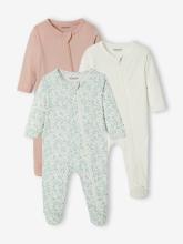 Lot de 3 pyjamas bébé en jersey ouverture zippée BASICS - lot ivoire, Bébé