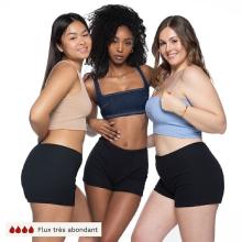 Notre shorty de règles français EFFUSIA en coton bio est dédié aux flux très abondants (et hémorragiques), lors du retours de couche et aux utilisations prolongées. Il vous garantit une confort et une absorption maximales grâce à une zone absorbante triplée et remontant très haut sur le devant et à l'arrière.