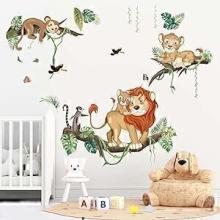 Sticker mural décoratif pour chambre d'enfant Motif animaux de la jungle safari singe lion : Amazon.com.be: Bébé et Puériculture