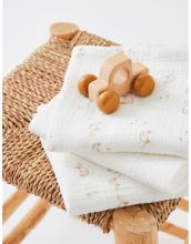 Set de 3 langes en mousseline 70 x 70 cm, écru et rose poudré | Noukie's
