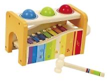 Bébé est prêt pour une aventure musicale avec ce banc à marteler aux couleurs amusantes de Hape. Lorsque Bébé frappe les boules de couleur à travers le banc, elles tombent sur le xylophone. Ding, dong, quel joli son !