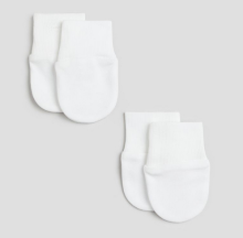 Moufles anti-griffures en jersey de coton doux. Modèle sans pouce avec finition côtelée au niveau du poignet.