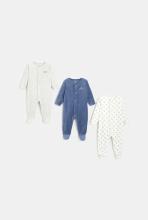 Tout confort et chaud sur la peau des petits, un lot de 3 pyjamas une pièce pour des nuits paisibles. Forme pressionnée sur le devant jusqu'aux pieds pour un habillage facile sur le dos.