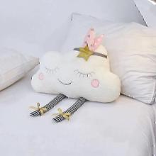 Ce coussin nuage blanc pour votre petite fille avec ses petites oreilles rose est à assortir avec la lampe LED nuage ou plume .
