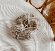 About Our timeless and gender neutral knit booties are the perfect wardrobe addition for your little love. Available in four classic colours and suitable for newborn to 6 months. Booties: Approx 9x10cm Complete the look with our Mini Knit Sweaters, Shorties, Pants & Beanies. Our matching Powder Blue booties can be