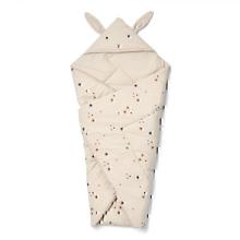 Un tapis délicat par son jeu de matières (une face gaze de coton, une face en jersey côtelé) et par les motifs qui le recouvrent. Son style tendrement scandina