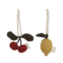 Cerise et citron fabriqués en 80 % de laine d'agneau et 20 % de nylon. Conçu avec une boucle de suspension tricotée.
