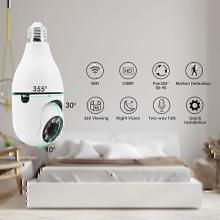 Caméra à 360 degrés WiFi vision nocturne avec lumière, ampoule E27, caméra de sécurité sans fil, suivi automatique, audio bidirectionnel, détection de mouvement
