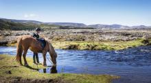 Visite d'une ferme à Husavik et balade à cheval de 2 heures. Traversée de champs de lave et de rivières à dos de cheval.