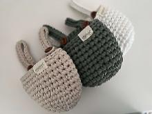 Entdecken Sie unseren handgefertigten Bettutensilo - der praktische Organizer für das Bettchen Ihres kleinen Lieblings! Die liebevoll gehäkelten Körbe lassen sich mühelos mit Holz-Knöpfen am Bett, Kinderwagen oder Puppenwagen befestigen. Perfekt für Schnuller, Trinkfläschchen, Windeln, Kuscheltiere und mehr. Maße: ca