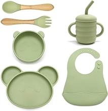 Panda Baby Siliconen Servies Set met Zuignap, Antislip Servies Set van 6 Stuks Borden Kom, Mok, Slabbetje, Lepel en Vork : Amazon.com.be: Wonen en keuken