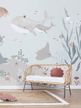 Plongez dans un décor magique avec ce papier peint qui vous donne l'impression de nager au milieu des baleines, tortues, poissons et autres créatures des mers !