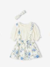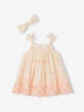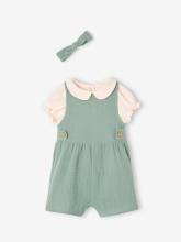 Ensemble 3 pièces bébé blouse brodée, short en gaze de coton et son bandeau assorti - rose, Bébé