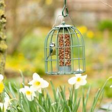 Cette belle mangeoire compact bleu verte est parfaite pour offrir des cacahuètes en toute saison.