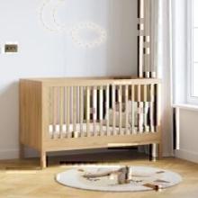 Ontdek het premium meegroeibed uit de «JAPANDI» collectie. Met prachtige, natuurlijke lamellen van onbewerkt eikenhout op de fronten straalt dit bedje tijdloze schoonheid uit. Dit veelzijdige bed groeit mee van ledikant tot peuterbed, perfect voor je kind van geboorte tot 6 jaar.
