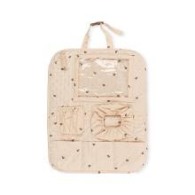 Rangement pour voiture 100 % coton biologique avec rembourrage en polyester recyclé. Le rangement est portable et facile à transporter, doté d’anses réglables qui se fixent à l’appui-tête et au dossier du siège. Il comprend un compartiment pour tablette et des poches de différentes tailles, dont l’une est spécialement