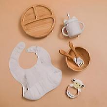 Ensemble composé d'une assiette, d'un bol, d'une cuillère et d'une fourchette. L'assiette à 3 sections est pratique pour servir différents groupes alimentaires et encourager le sevrage. Ils sont fantastiques pour aider les parents à préparer des repas équilibrés.
