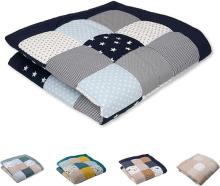 ULLENBOOM ® Tapis d’Éveil et Matelas pour Parc Bébé Bleu Clair Gris (140x140 cm Tapis sol bébé patchwork, Motifs étoiles, pois et vichy) : Amazon.fr: Bébé et Puériculture
