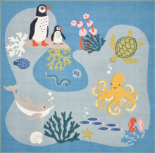 Ce tapis transforme la chambre en un océan magique. Il est doux, agréable sous les pieds et résistant. Les poils sont fabriqués en polyester recyclé issu de déchets en plastique récupérés le long des littoraux.