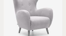 La butaca Patio une el diseño retro del sillón orejero de los 60 con los botones decorativos del respaldo, la chenilla y patas de madera maciza de haya. ¿Por qué quedarse con lo bueno cuando puede ser