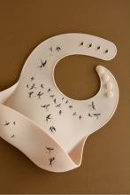 Pour garder les vêtements de votre bébé propres durant ses repas, notre joli bavoir “Hirondelles Sable” aux teintes douces est idéal !Disposant de 4 réglages et d’une grande poche permettant de récupérer les aliments, il sera parfait pour apprendre à manger comme un grand !- Résistant de -20°C à 200°C- 4 réglages- Étanche- Grande résistance à la déchirure