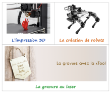 Vous connaissez l'insatiable curiosité de Marc envers la technologie en général. Il a commencé à s'intéresser aux domaines suivants : l'impression 3 D - la création de robots et la gravure par laser.