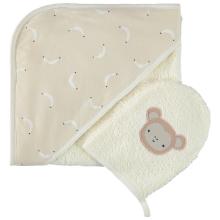 Set de bain cape + gant de toilette patch brodé singe pour bébé