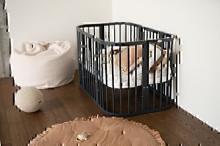 Waldin® Lit bébé en bois 7en1 avec matelas, berceau qui grandit avec l'enfant, ventilé, sommier réglable en 5 positions, set tout compris, Taille:Bois graphite,Couleur graphite