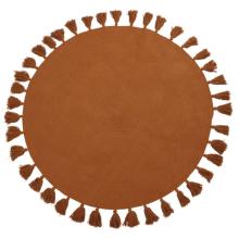 Tapis rond en coton recyclé marron caramel à pompons D100 NINA | Maisons du Monde