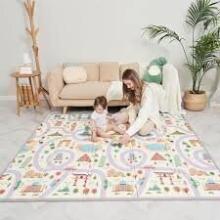 Tapis de sol XXL pour favoriser la motricité de bébé. Il est épais, pliable, léger, antidérapant, isolant, reversible et se nettoie facilement ! Housse offerte.
